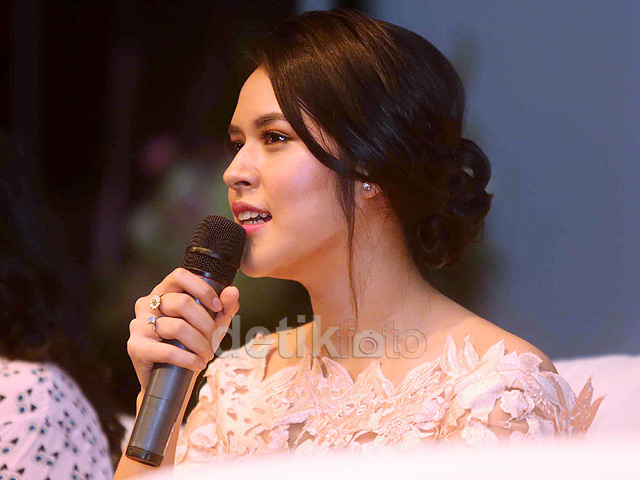 Raisa saat jumpa pers di Plaza Senayan, Jakarta Pusat, Senin (20/4/2015).