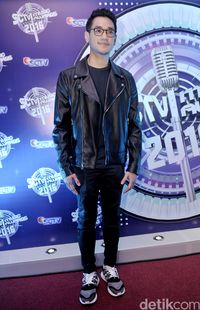 Ia memadukan jaket kulitnya dengan kaus dan celana serba hitam. Sneakers hitam, abu-abu dan putih melengkapi penampilannya. Pool/Noel/detikFoto.