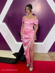 Raisa menghadiri AMI Awards 2025 di Ciputra Artpreneur, Jakarta Selatan. Dia tampil dengan dua dress panjang bernuansa pink dan lilac.