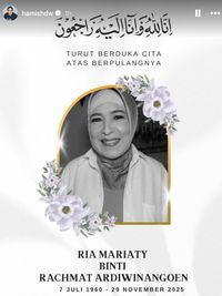 Tapi dalam Instagram Stories miliknya, bapak satu anak itu, turut berduka. "Turut berduka cita atas berpulangnya Ria Mariaty binti Rachmat Ardiwinangoen, 7 Juli 1960-29 November 2025," tulis unggahan tersebut dalam Instagram Stories miliknya dilihat detikcom, kemarin. Foto: dok instagram Hamish Daud